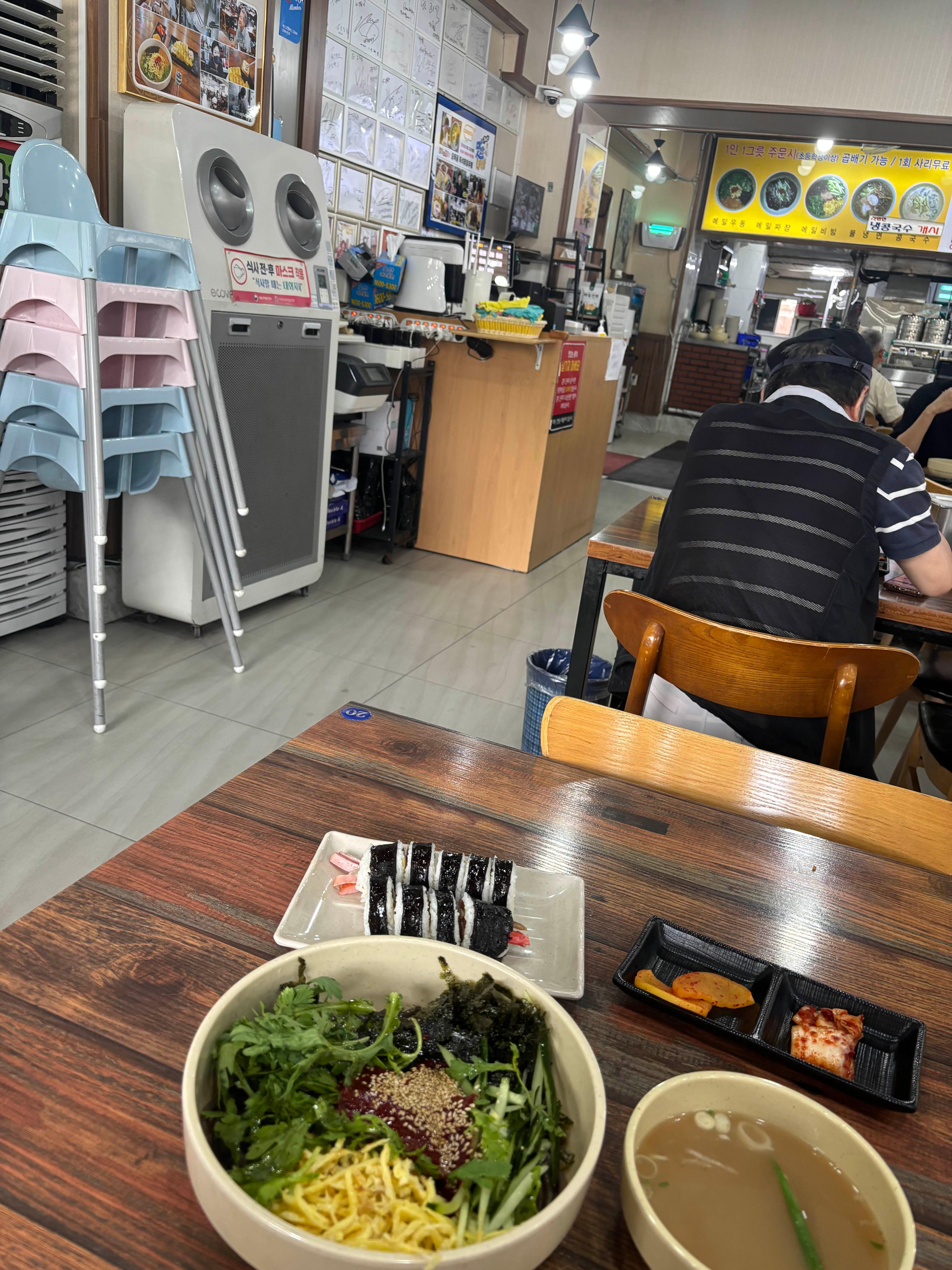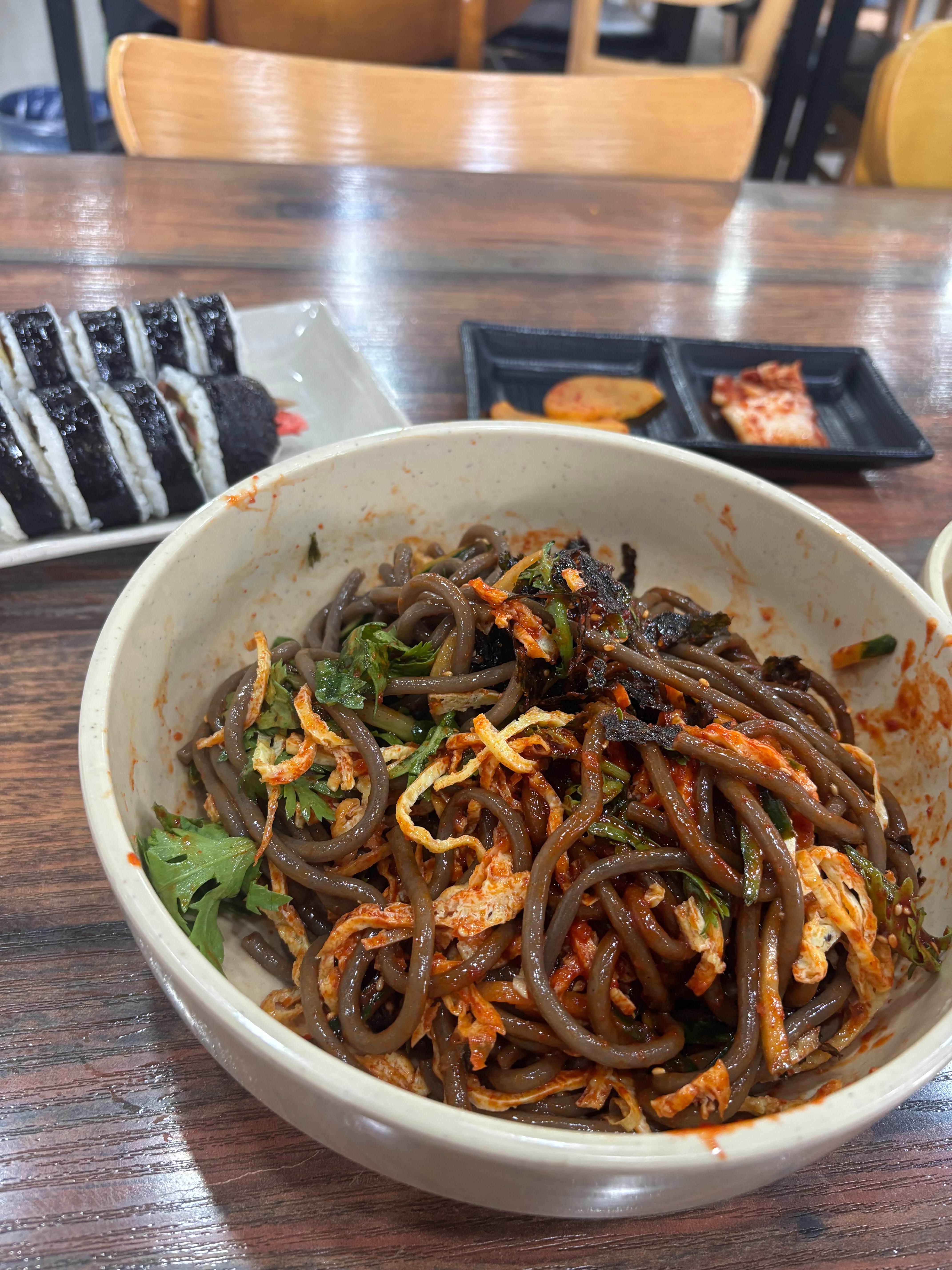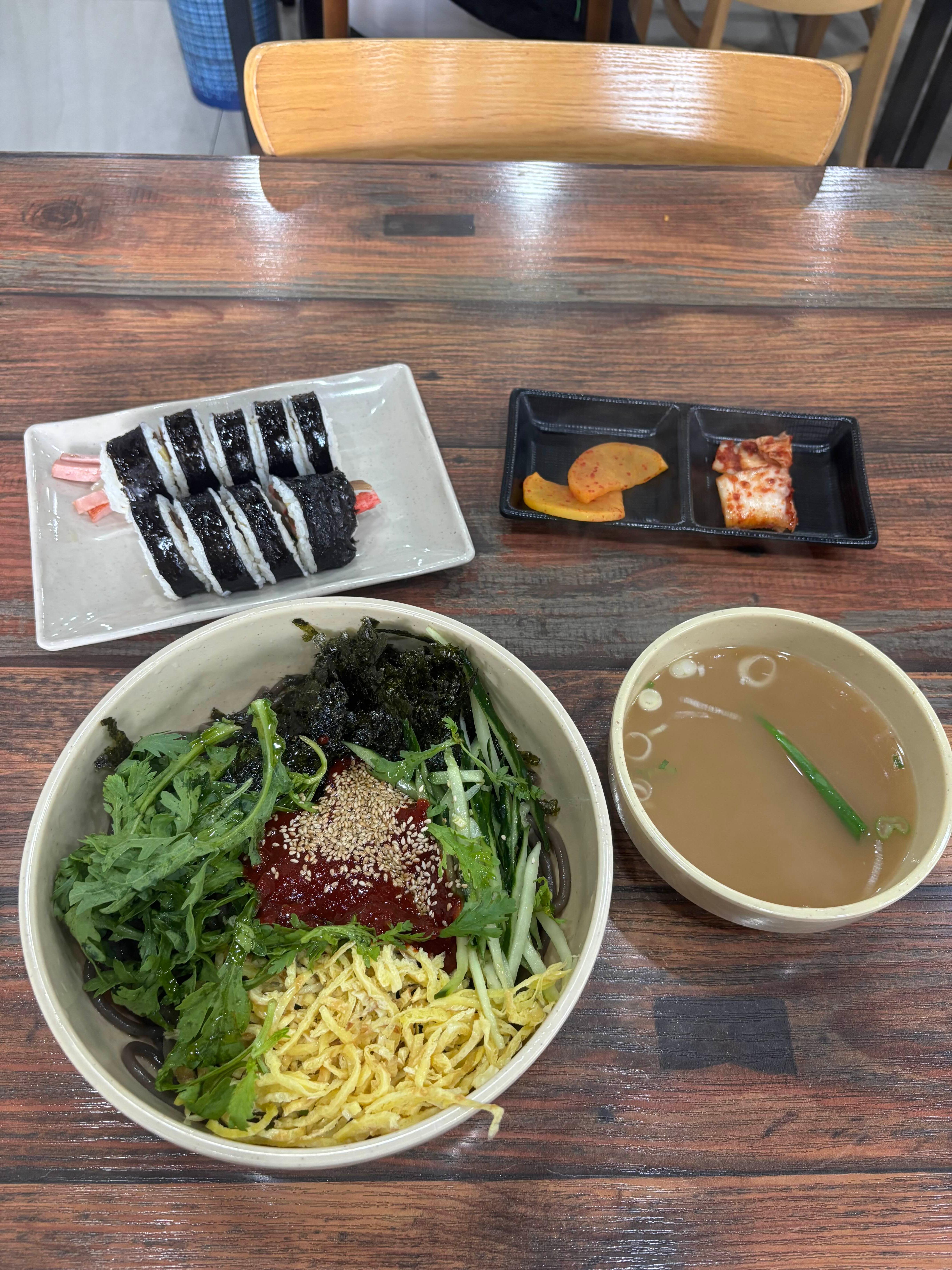 먼길왔으니 배불러도 김밥과 비빔우동을 시켰습니다.