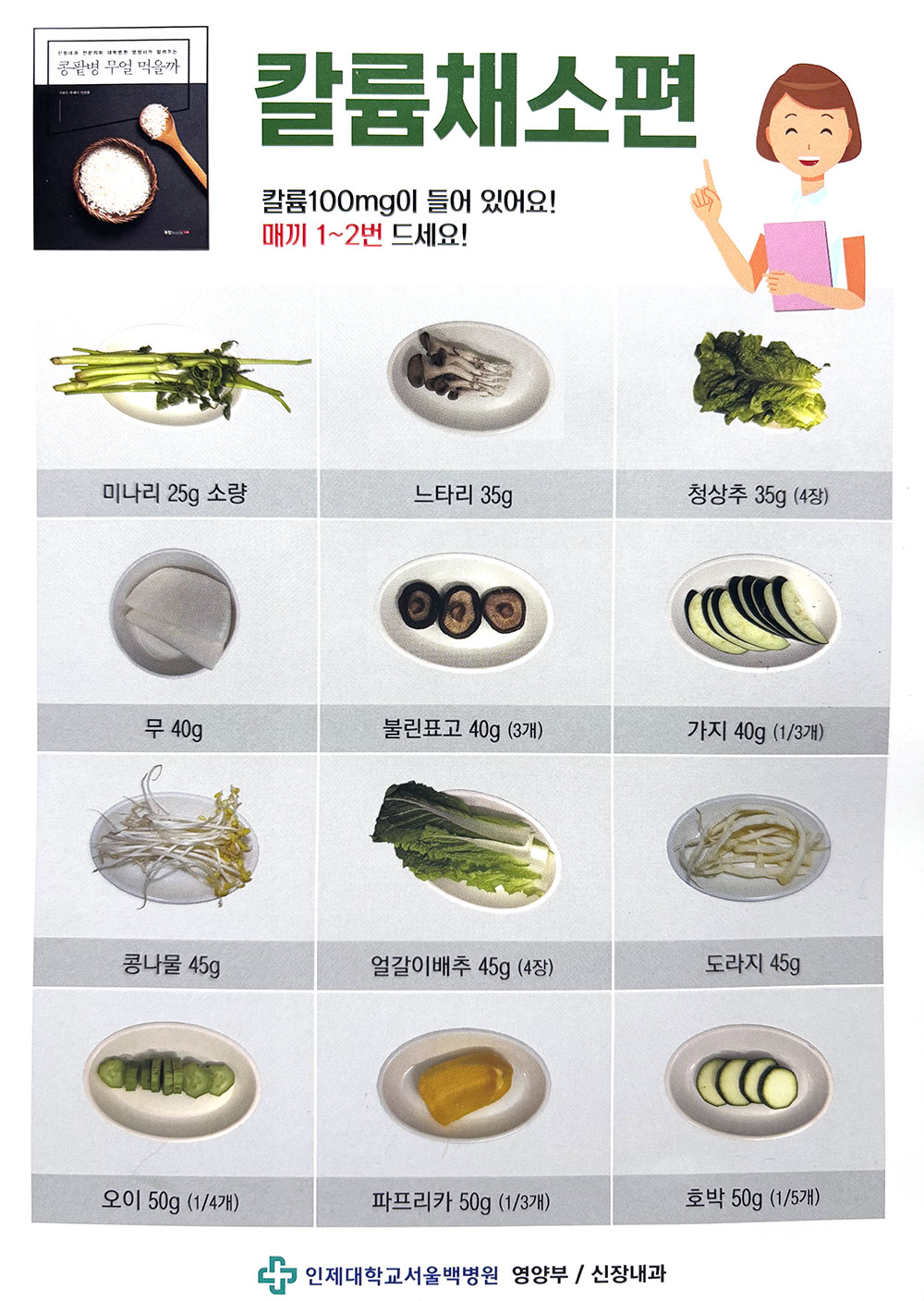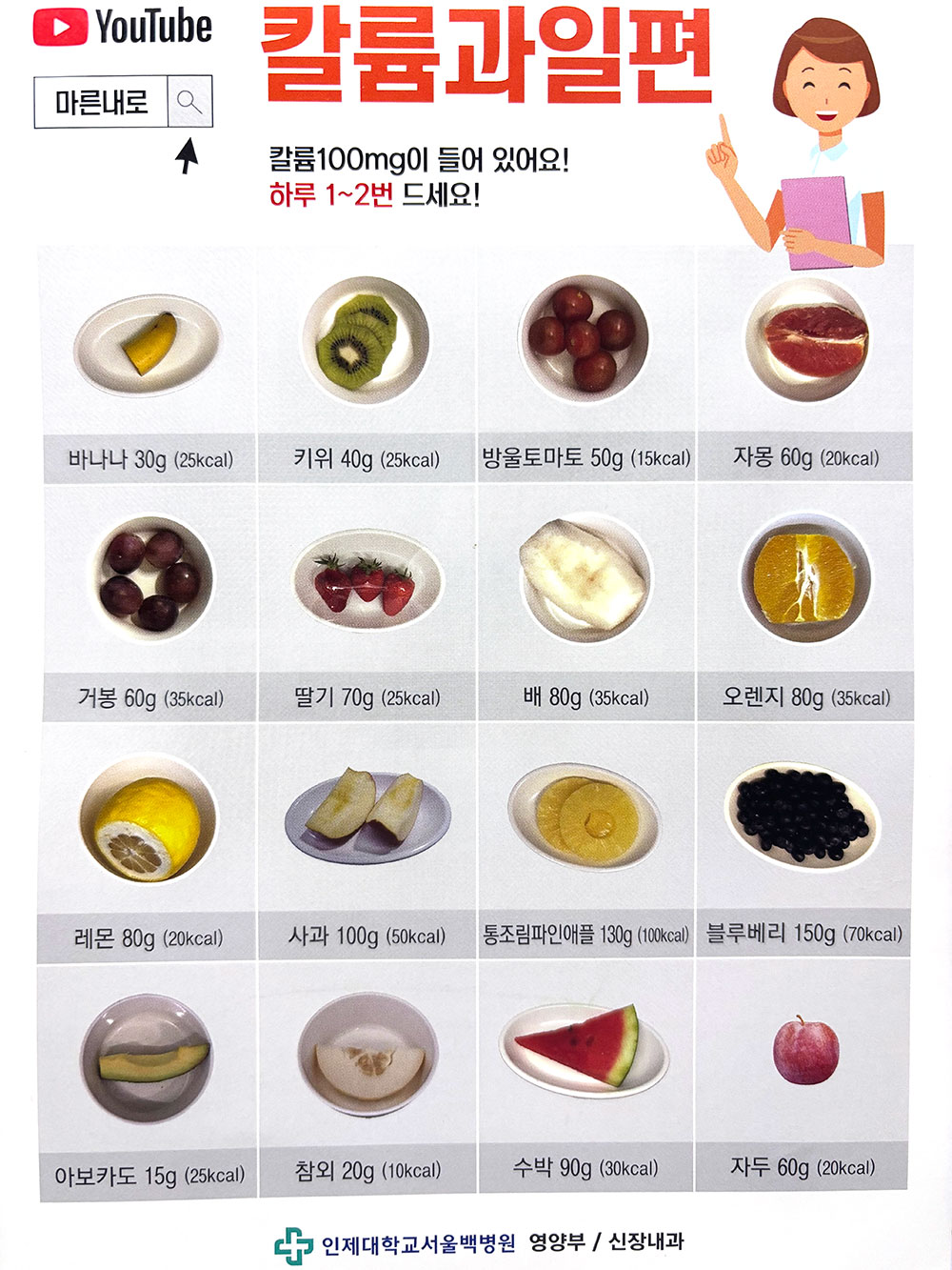 이상으로 인제대학교 백병원에서 제공받았던 당뇨성신장질환 환자용 식품안내표를